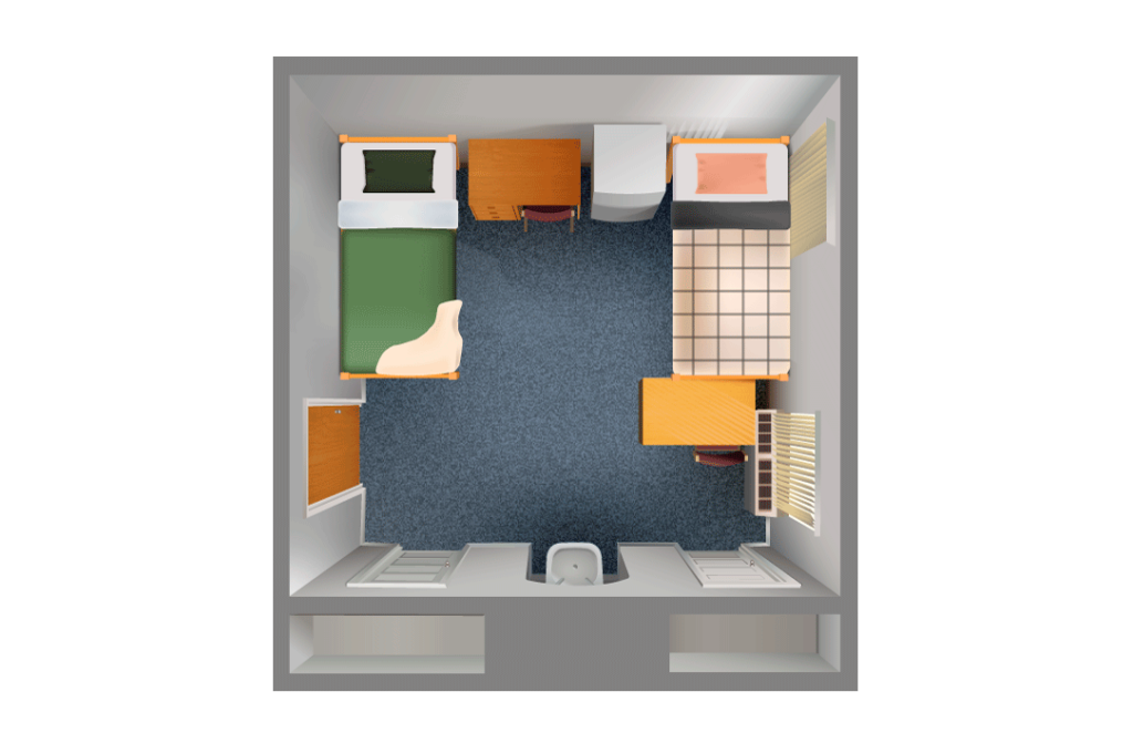 - Standard single room dimensions: approximately 138” x 97” (sizes vary for small, standard, and large single rooms)