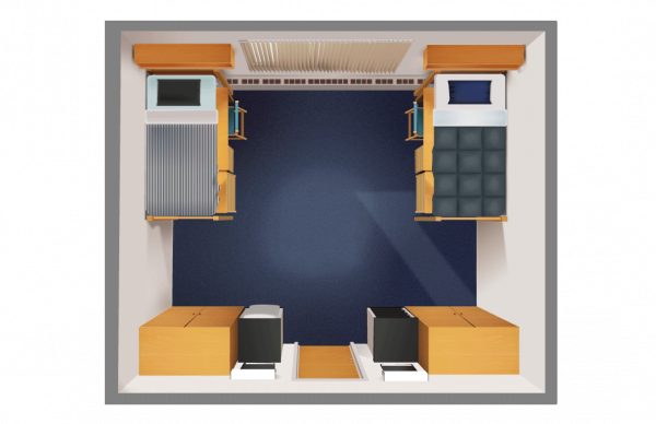 - Desk with chair, storage drawer (15” x 8”), and lower storage unit (16” x 16”)