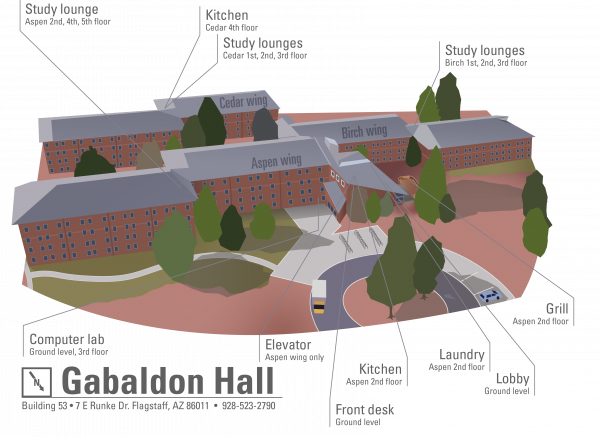 Centrally located on Flagstaff campus, Gabaldon is surrounded by ponderosa pines and offers suite-style living for first-years and sophomores.