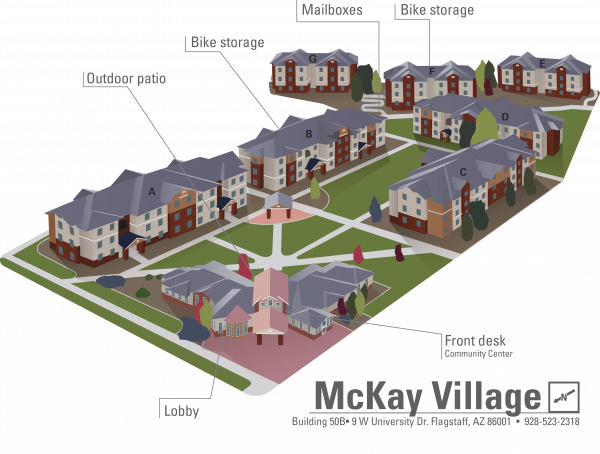 Located on central campus, it's just an 8-minute walk to off-campus restaurants, grocery stores, and shopping. The hall is named after NAU alumna Kay McKay, founder of Big Brothers and Big Sisters of Flagstaff and a long-time advocate for education.