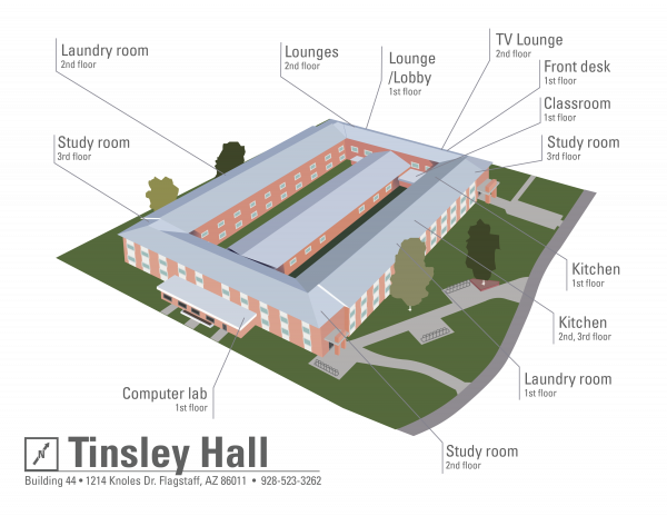 Located in the Central District with bus stops nearby, Tinsley makes it easy to get around campus. It was named after Dr. William W. Tinsley, who served NAU for 35 years and left a legacy of support through a scholarship for students in social studies.